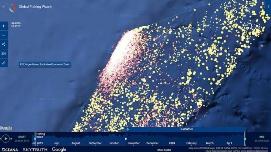 Mientras las calles permanecen vacías por la pandemia del coronavirus (Covid-19), que azota a casi todo el mundo,casi 100 buques ilegales ocupan el mar argentino tras la pesca de calamar. Las embarcaciones se encuentran en el Este Asiático a la zona económica exclusiva (ZEE) argentina.