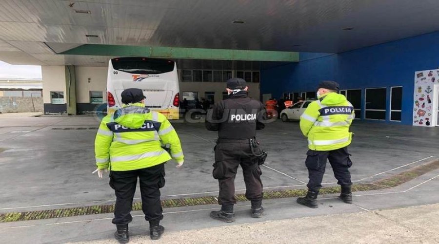 Un inusual movimiento de funcionarios y fuerzas de seguridad se verificó hoy en la Terminal de Ómnibus de Río Grande, tras el arribo de un colectivo de la empresa Tecni Austral, proveniente de Punta Arenas.