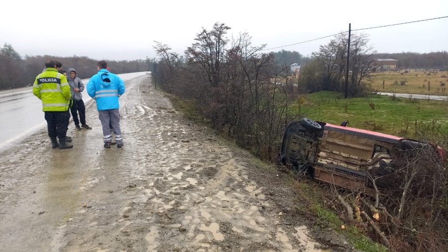 Hace instantes se produjo un vuelco en el km N°3053 a cercanías de Tolhuin, en el cual los tres ocupantes que se encontraban en el habitáculo resultaron sin ilesos.