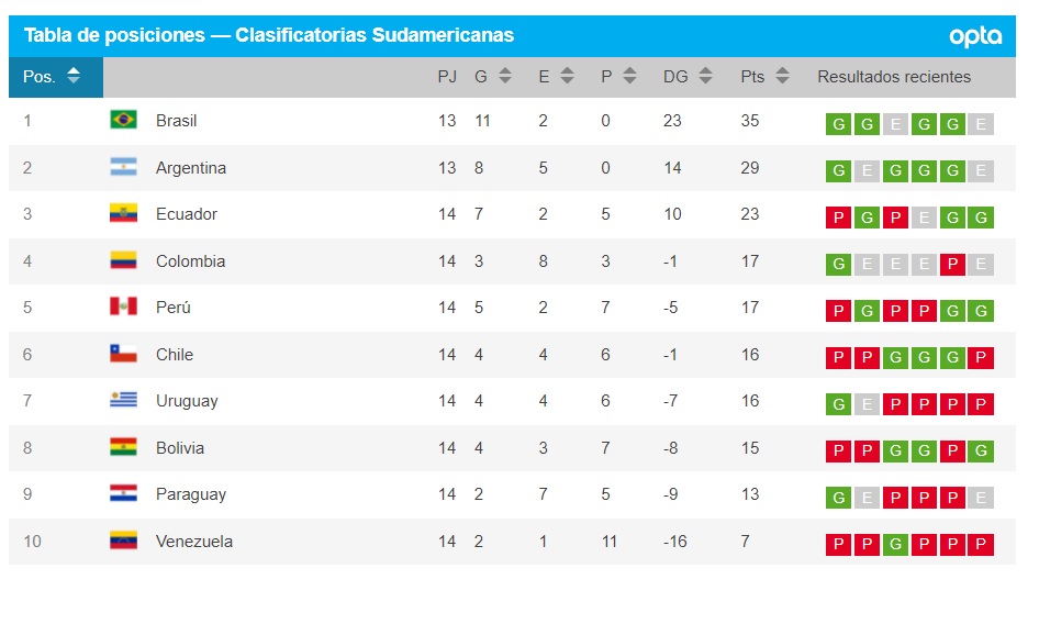 La Argentina, que lleva un invicto general de 27 partidos y suma 29 puntos en las Eliminatorias (seis menos que Brasil), arrancó el día pendiente de la visita de Uruguay a la altura de La Paz.