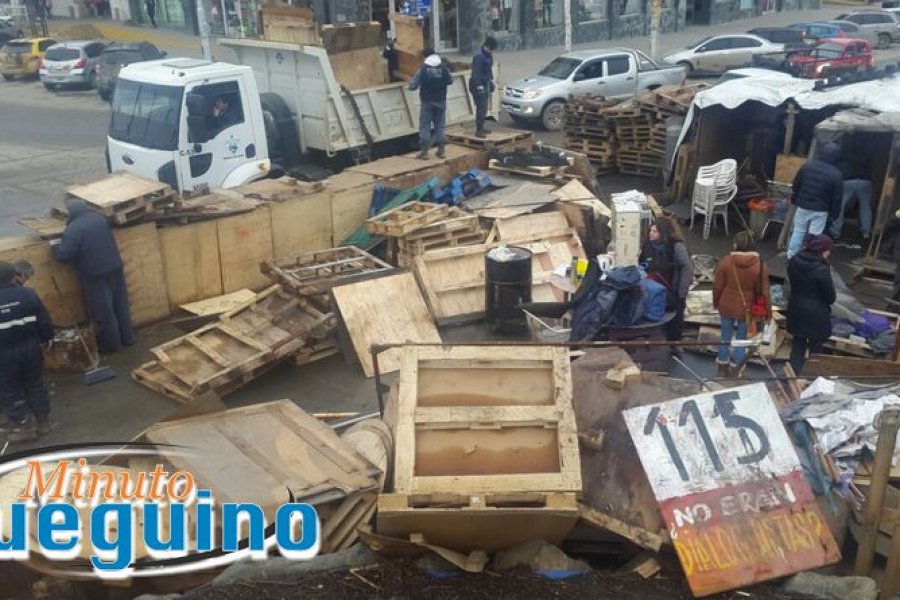 Luego de 136 días de acampe en la ciudad de Rio Grande, el SUTEF en compañía de otros gremios comenzaron a desarmar las carpas, y levantar la centena de pallets acumulados en la intersección de Av. San Martin y Belgrano.