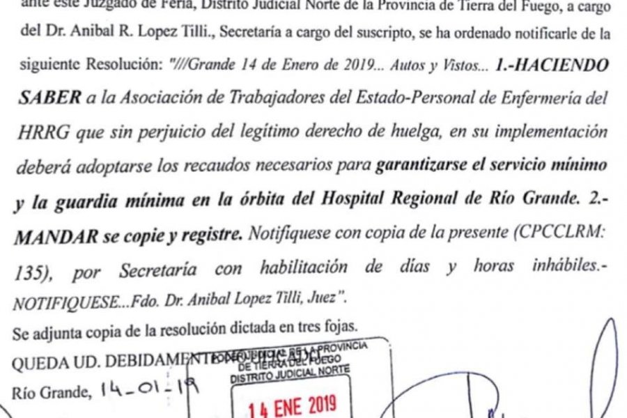 Pero esta situación no culminó en las derivaciones, ya que desde el Hospital realizaron una denuncia en el Juzgado de Turno en lo civil para que “el sindicato que tutela a los enfermeros garantice las guardias mínimas, porque somos un servicio esencial. Nosotros pedimos solicitud de turno para que se expida, y ya hay resolución en eso”.