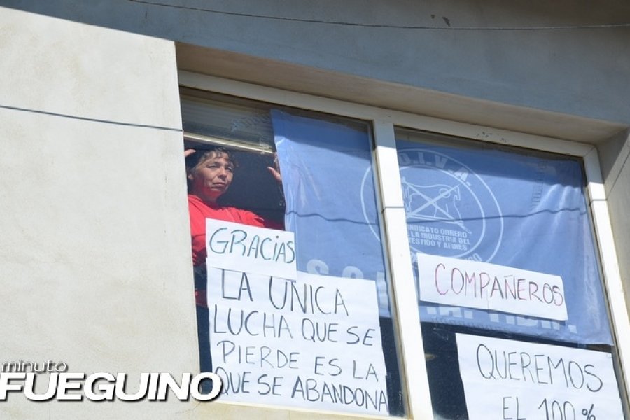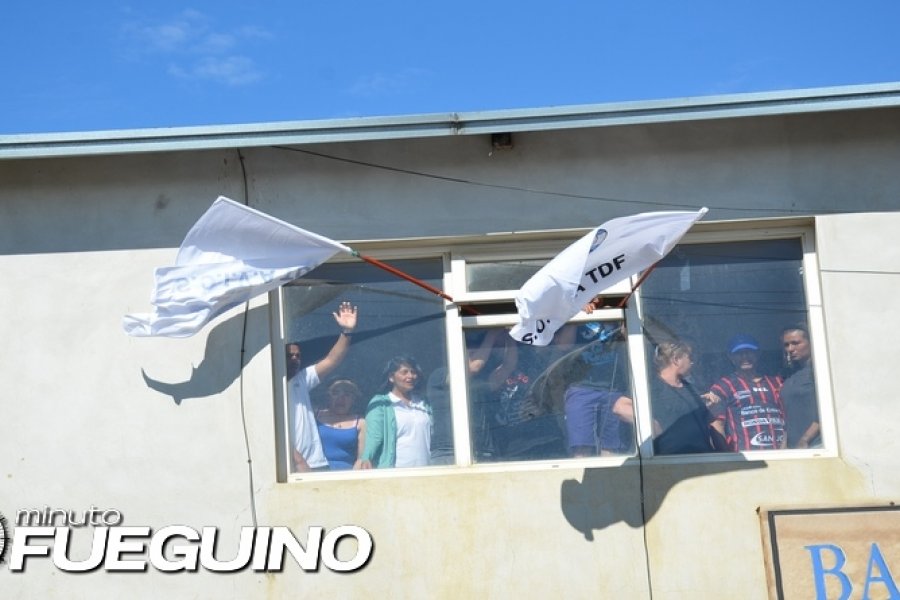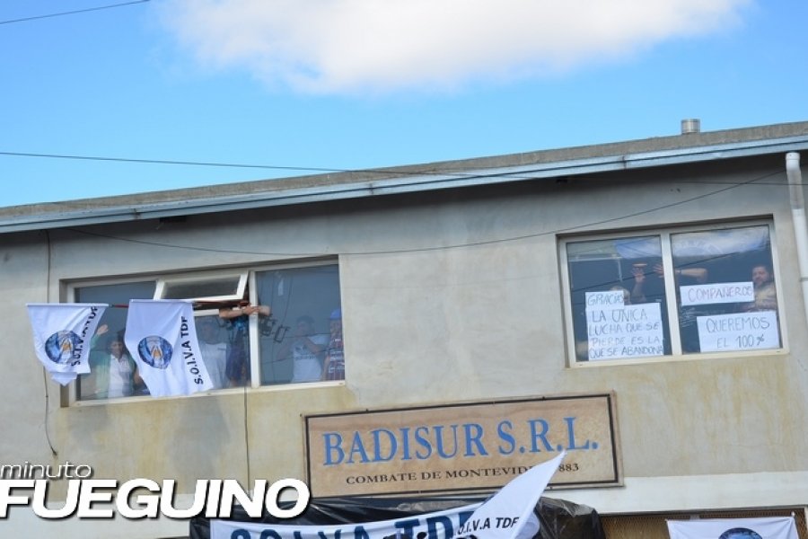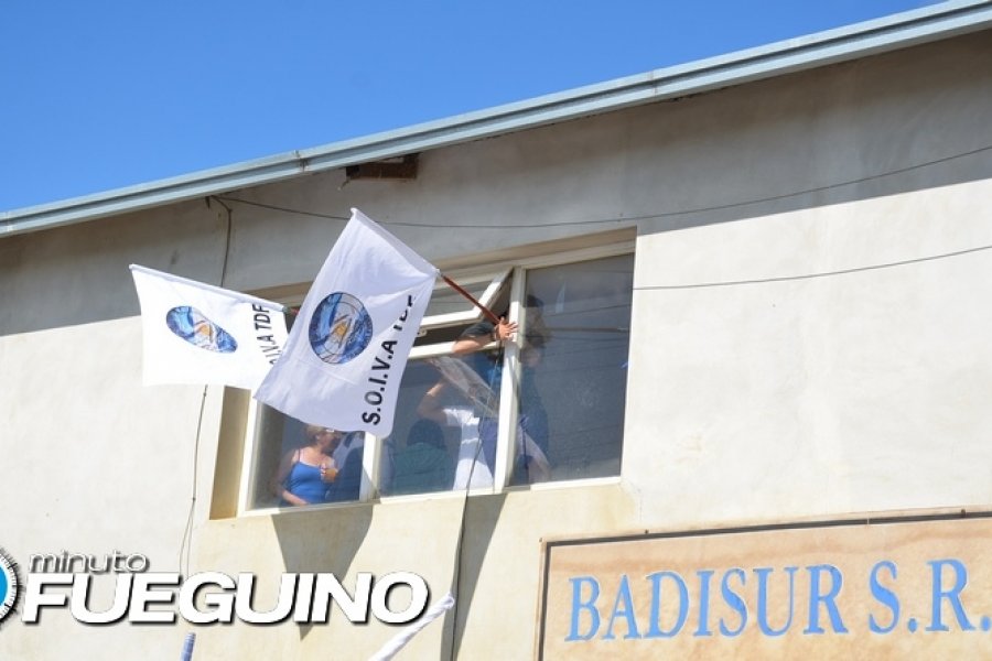 Las instancias del acto fueron seguidas por las trabajadoras y los trabajadores del Badisur, quienes desde las ventanas en la planta alta se expresaron junto con los oradores y el resto de los manifestantes.