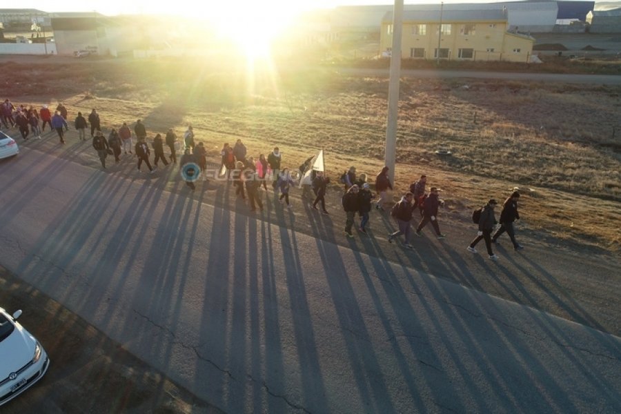 “Iniciamos una medida un poco distinta, que ha provocado hasta burlas. Pero no tengan ninguna duda que estaremos recorriendo paso a paso la distancia que nos llevará hasta la casa de Gobierno para que se escuche nuestro reclamo: los metalúrgicos queremos seguir viviendo en Tierra del Fuego”, inspiró en el acto previo Oscar Martínez, secretario general de la UOM.