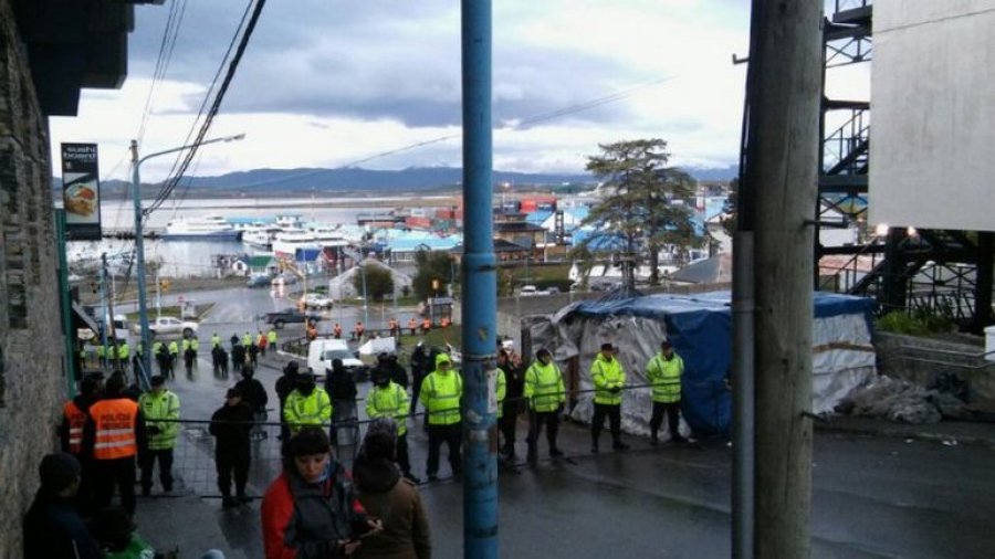 Personal Policial este miércoles procedió a desarmar las carpas ubicadas en calle Lasserre y Roca, de los laterales de Casa de Gobierno.