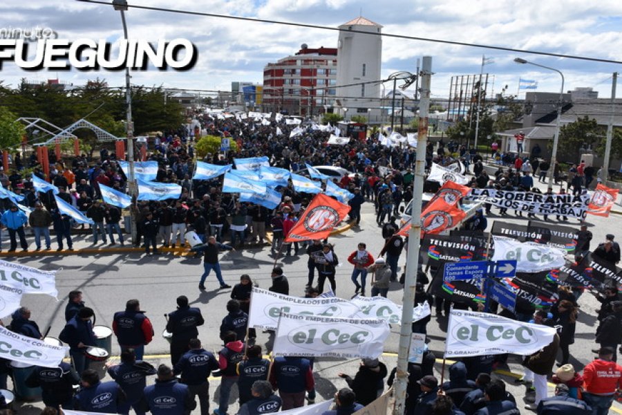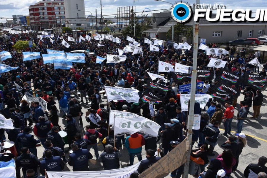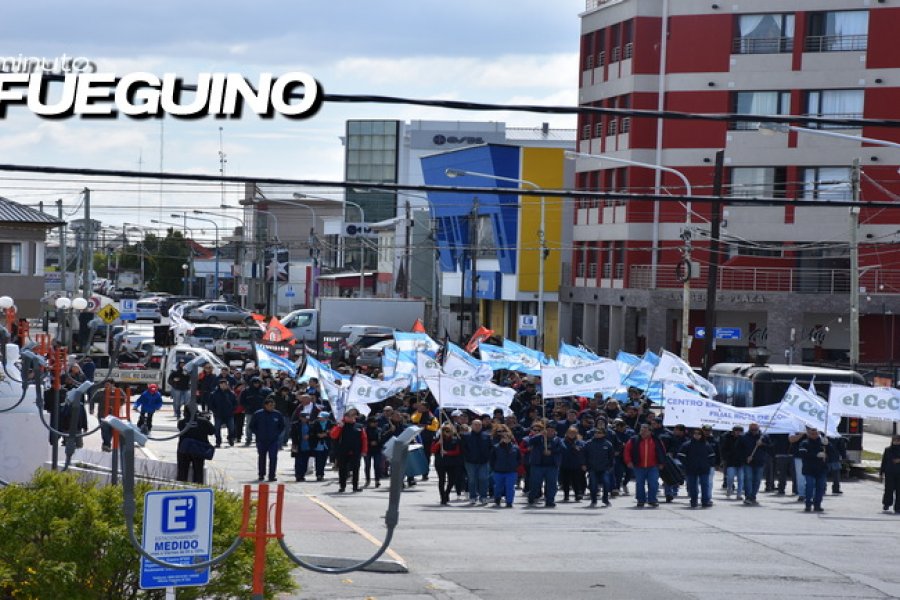Con carteles, pancartas y pegatinas, los gremios CEC, UOM, SECURITAS, ASIMRA, ATE, SUTEF, SECASFPI y la comunidad educativa de la UNTDF realizaron un recorrido simbólico por el centro de la ciudad, evidenciando su descontento con el proyecto.