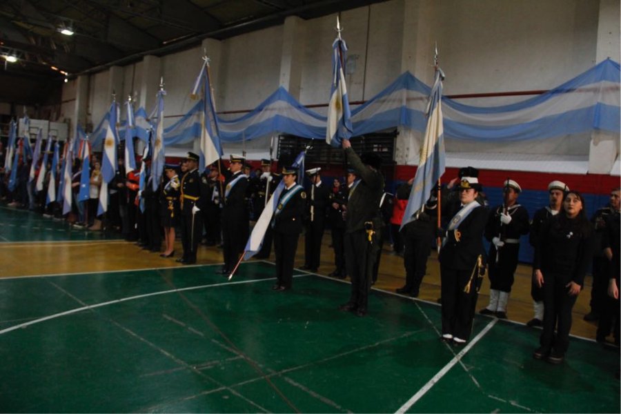 Luego, las autoridades se dirigieron al Gimnasio del Colegio Don Bosco donde se llevó a cabo el acto central en conmemoración del 202º Aniversario de la Declaración de la Independencia Argentina ocurrida en Tucumán el 9 de julio de 1816. Como todos los años, banderas de diversas organizaciones civiles, militares, sociales y educativas acompañaron el evento.