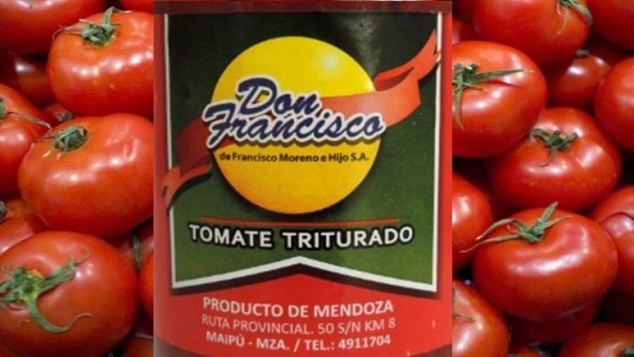 La Administración Nacional de Medicamentos, Alimentos y Tecnología Médica (Anmat) dispuso la prohibición de comercialización en todo el territorio nacional del producto “tomate triturado marca Don Francisco, producto Libre de gluten - Sin TACC, elaborado por Francisco Moreno e Hijo S. A., RNE N° 13-006046, RNPE N° 025/13037253, Ruta Provincial 50 S/N, Km 8, Maipú, Mendoza”, detalla la disposición 473 publicada en el Boletín Oficial.