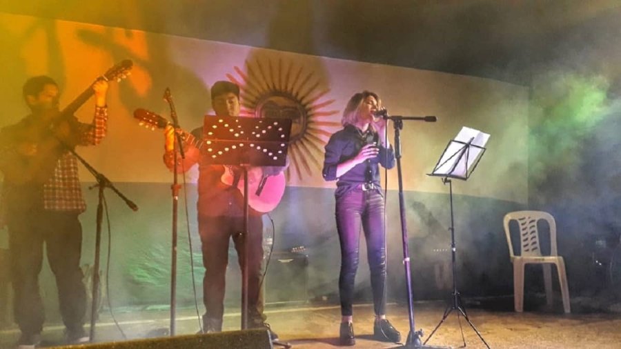 Agregó la joven que “hacemos un poco de todo; lo que es folklore interpretamos autores fueguinos con repertorios de Walter Buscemi, Alberto Gómez, Rubén Baliño, Julio José ‘Mochi’ Leite, entre otros, también de Abel Pintos. Asimismo, interpretamos chacareras, zambas, gatos y escondidos”.