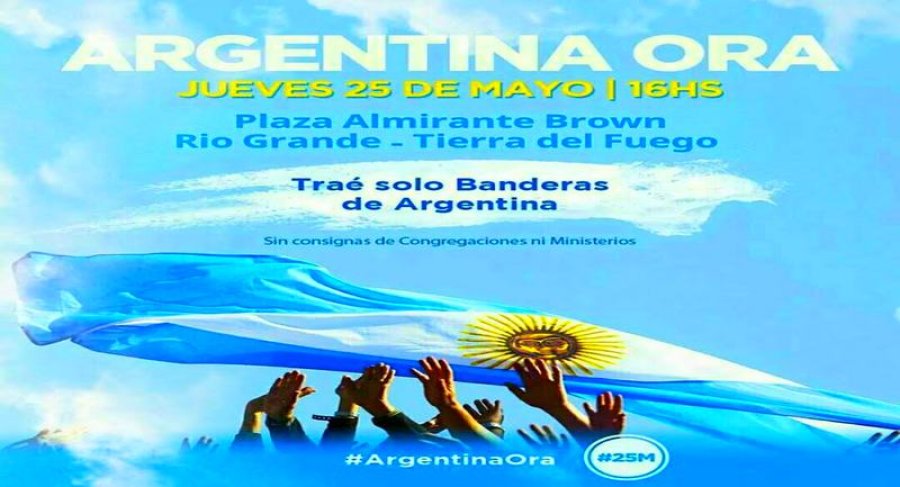 En Río Grande la convocatoria es en la Plaza Almirante Brown, donde confluirán distintas denominaciones Evangélicas Cristianas que se ponen de acuerdo para bendecir nuestro país y clamar a Dios por Argentina.