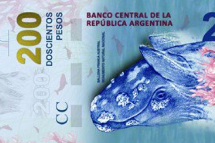 - Billete de $200: Ballena franca austral. Mar Argentino, Antártida e islas del Atlántico sur.