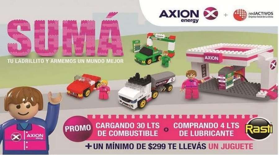 AXION energy, en alianza con la organización social redACTIVOS y la fábrica de juguetes Rasti, lanzó al mercado una promoción coleccionable que tiene dos grandes objetivos: premiar a los clientes que compren combustibles AXION o lubricantes Castrol y, por otro lado, colaborar con una ONG que brinda oportunidades laborales a personas con discapacidad