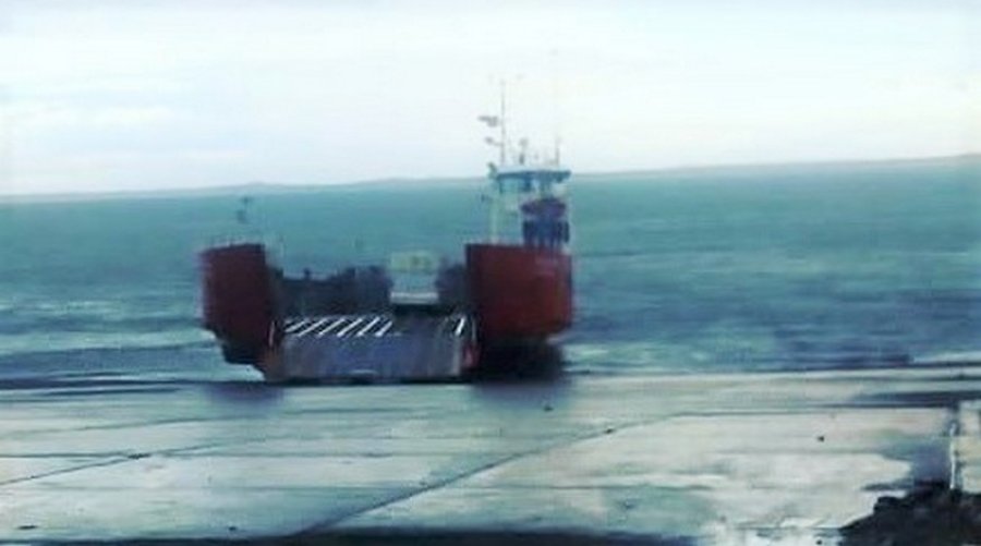En horas de esta tarde la barcaza Patagonia de TABSA quedó encallada en la zona de Bahía Azul. Decenas de automóviles quedaron arriba del ferry sin poder bajar.