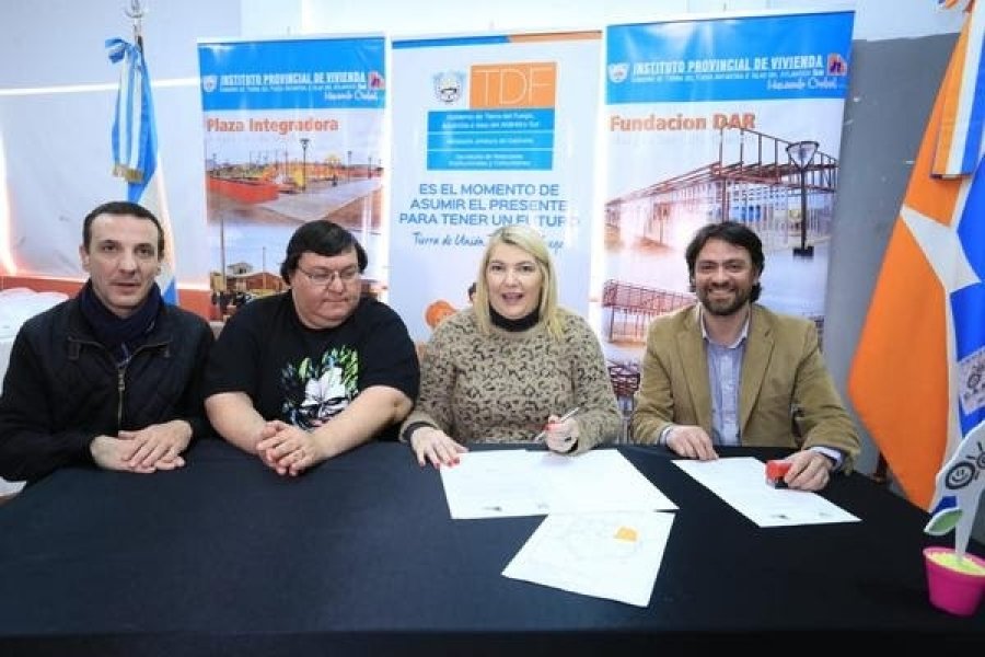 La gobernadora Rosana Bertone hizo entrega este lunes al CAAD de Río Grande, un terreno de 3.466 metros cuadrados ubicado en la Margen Sur que será destinado a la construcción de un gimnasio, y un aporte no reembolsable para la Cooperadora Amigos del CAAD, en el marco del programa “Tierra de Unión”, que fue destinado a la compra de materiales.