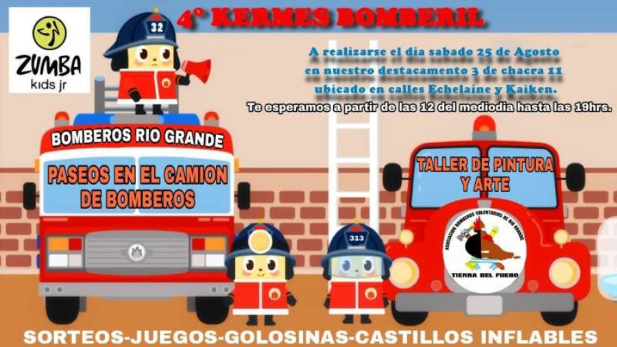 “El día sábado 25 de agosto realizaremos una Kermes Bomberil como ya es tradicional en este mes del niño. Por eso los invitamos a participas de un día distinto en donde podrán disfrutar de paseos en el camión de bomberos, tirar agua como si fueran bomberos de verdad, también habrá chocolatada, juegos, sorteos, golosinas, taller de pintura y arte y varios personajes que acompañaran este evento”, dijo el presidente de la Asociación de Bomberos Voluntarios de esta ciudad, Pascual Lombardo.