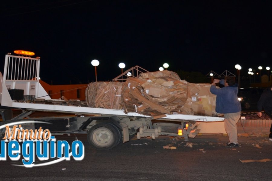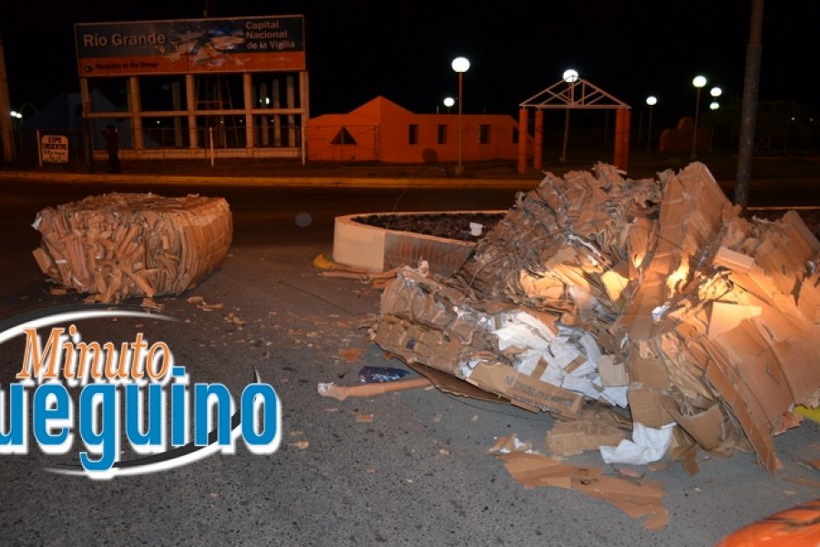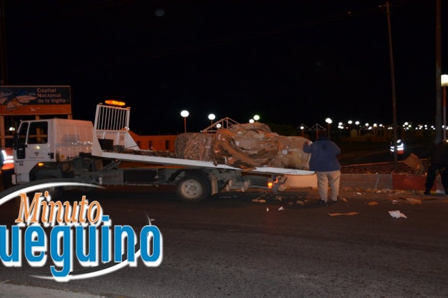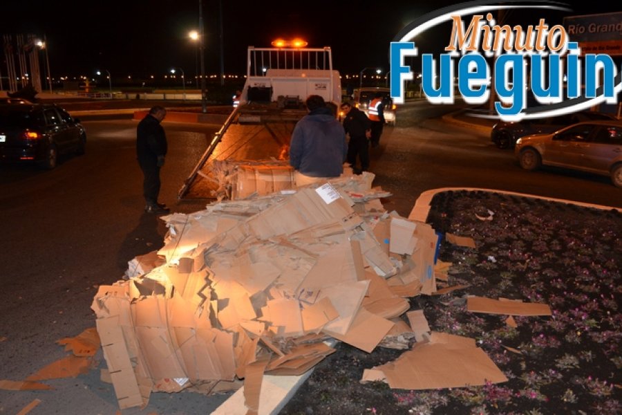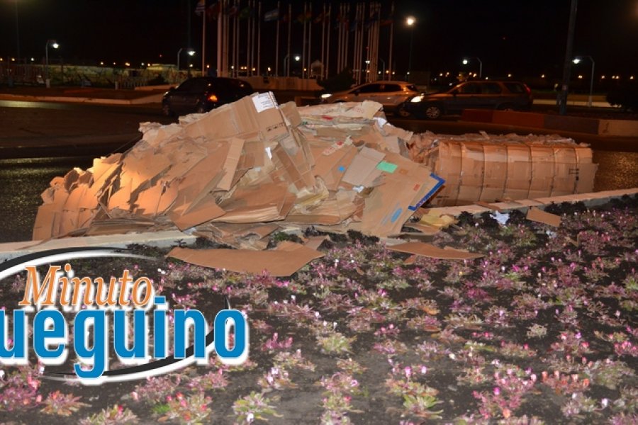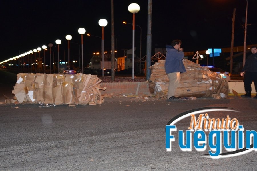 Un camión se encontraba circulando desde el Parque Industrial a la estación de servicios ubicada sobre la calle Elcano. Al pasar por la rotonda y doblar termino cayendo sobre la calzada su cargamento de cartón prensando. El conductor del camión solo sujeto la primer y la última alera de cartón, dejando las medio suelta, lo cual provoco que se cayera cuando el camión giró.