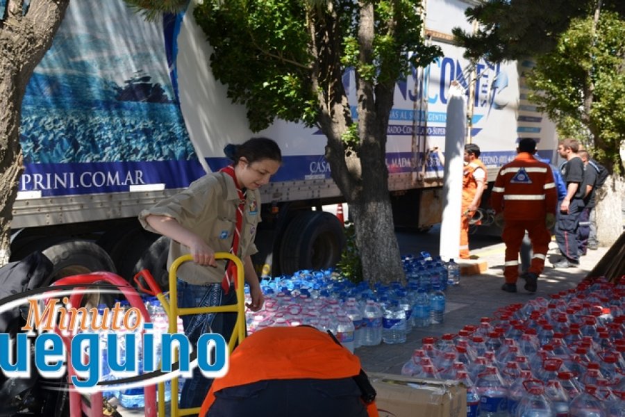 Colaboraron con el embalaje y la carga integrantes a distintas instituciones, como los cuatro grupos de scouts de la ciudad, Shelk’nam, Orun Kayén, Nuestra Señora de los Scouts y Tantanaqu de Chacra II, Bomberos Voluntarios, Segunda Compañía de Bomberos Voluntarios, Veteranos de Guerra del Centro ‘Malvinas Argentinas’ y de la misma repartición de Defensa Civil.