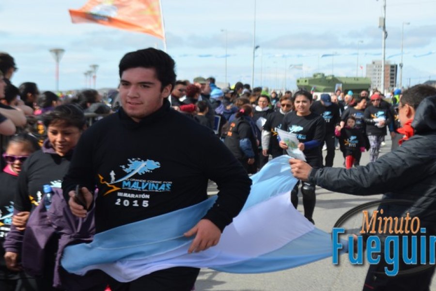 Miles de vecinos, desde niños hasta ancianos, civiles, militares, fuerzas de seguridad, veteranos de guerra, gremios, asociaciones, ONGs, juntas vecinales, instituciones educativas, familias y hasta aviones del Aeroclub de Río Grande, participaron de la tercera Maratón por Malvinas bajo el lema ‘Río Grande corre por la Paz y el Diálogo con el Reino Unido por la Soberanía de Malvinas”.