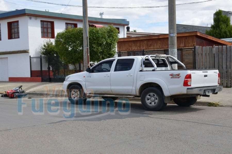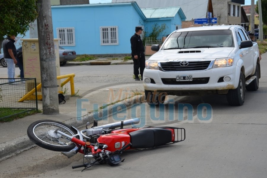 Una camioneta Toyota modelo Hilux, de color blanca se encontraba circulando por calle 9 De Julio al llegar a la intersección con calle Bilbao colisionó con una motocicleta marca Suzuki modelo AX Special de 100cc. El conductor de la misma, fue identificado como Juan Gasparini de 24 años. Esta persona fue traslado al Nosocomio Local ya que presentaba diversas dolencias.