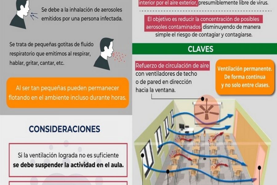 Una ventilación correcta es clave en la prevención del contagio de Covid-19 por acumulación de aerosoles, esas "pequeñas gotitas de fluido respiratorio que emitimos al respirar, hablar, gritar, cantar".