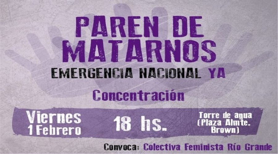 Este 1 de febrero la Colectiva Feminista llama a una concentración a las 18 horas frente a la Torre de Agua (frente a la Plaza Brown).
