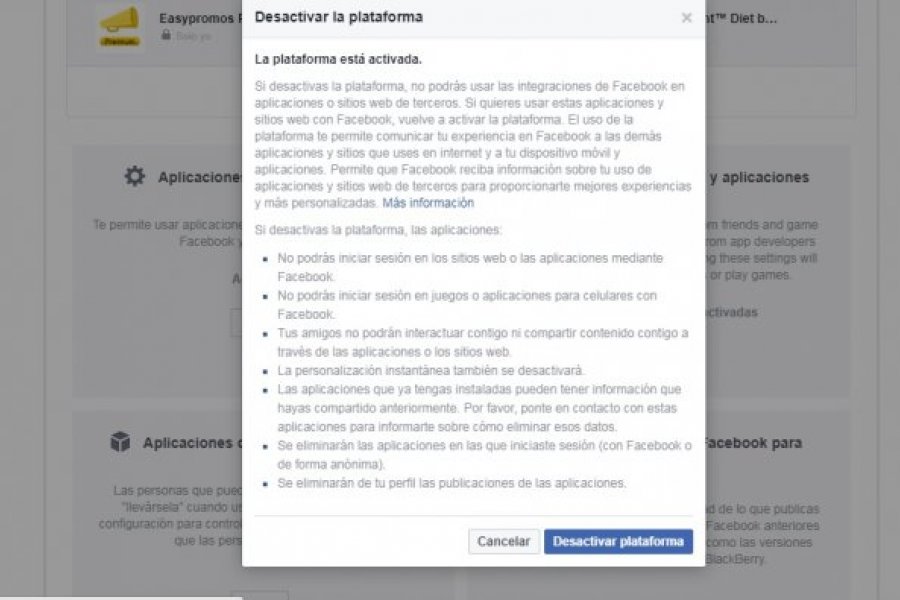 Desactivar la plataforma de aplicaciones de Facebook