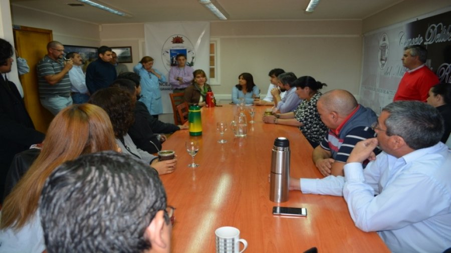 El Presidente del Concejo Deliberante, Alejandro Nogar junto a los parlamentarios, Paulino Rossi, Miriam “Lali” Mora, Raúl von der Thusen y Verónica Gonzáles se reunieron con los trabajadores de la Institución a fin de confirmarles que “a partir de la ordenanza que votamos y que promulgó el Ejecutivo Municipal, no se aplicará ningún tipo de descuento en relación al Fondo Solidario aprobado por la Legislatura Provincial e impulsado por el Gobierno.