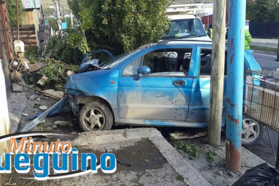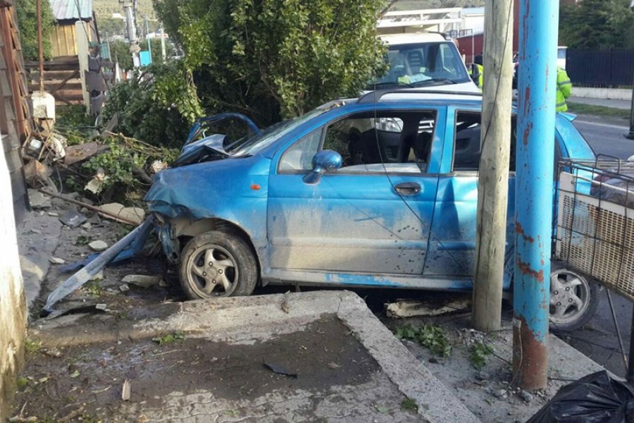 El accidente vial tuvo lugar calle Perón Sur entre Guadacosta Rio Iguazy y Ruiz Galán de Ushuaia. Una mujer de 33 se encontraba conduciendo un automóvil Chery QQ, por causas que se desconocen el rodado se salió de la cinta asfáltica, impactando contra unos árboles, luego contra un cesto de residuos y finalmente contra el nicho de gas de la vivienda, informó la Policía.