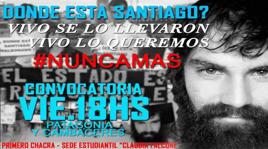 El Movimiento Social “Primero Chacra” está convocando a un acto por la “Aparición con Vida de Santiago Maldonado”. Será el próximo viernes a las 18, en la esquina de Cambaceres y Patagonia. “Nosotros que siempre tratamos de mantenernos al margen de los partidos políticos, tenemos que decir que lo de Santiago Maldonado es algo grave y por eso entendimos que tenemos que estar en la calle”, dijeron los organizadores.