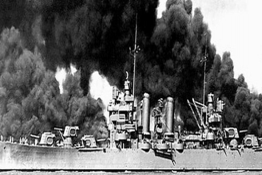 En ese ataque sorpresivo, el primer golpe fue el estallido del Arizona. Una bomba japonesa dio en el polvorín del buque, que provocó la muerte de 1177 tripulantes; luego fue el turno de Oklahoma y del Utah.