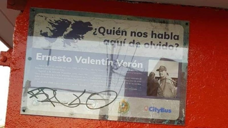Un nuevo episodio vandálico tuvo lugar en la ciudad de Río Grande, cuando desconocidos decidieron rayar la primera y única garita de colectivos que rinde homenaje a los ex combatientes de Malvinas de Tierra del Fuego.