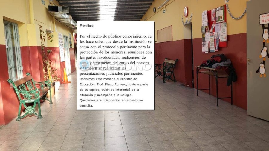 Por el hecho de público conocimiento, se les hace saber que desde la Institución se actuó con el protocolo pertinente para la protección de los menores, reuniones con las partes involucradas, realización de actas y separación del cargo del portero, y también se realizarán las presentaciones judiciales pertinentes. Recibimos esta mañana al Ministro de Educación, Prof. Diego Romero, junto a parte de su equipo, quién se interiorizó de la situación y acompaño a la Colegio.