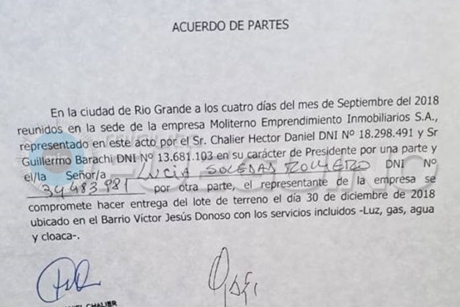 Minuto Fueguino dialogó con el Presidente esta inmobiliaria, Chalier Héctor Daniel, quien explicó “hemos hecho lo imposible para poder entregar los terrenos en tiempo y forma, pero se nos han complicado las cosas en el país. Estamos haciendo todo lo posible para entregar los terrenos el 30 de diciembre. Se lo vamos a dar con todos los servicios, tal como estaba estipulado”