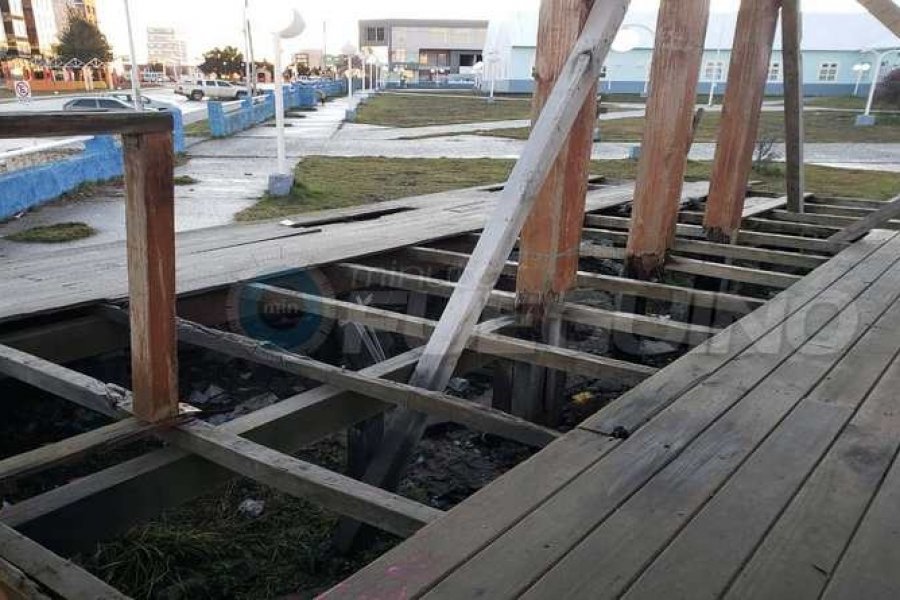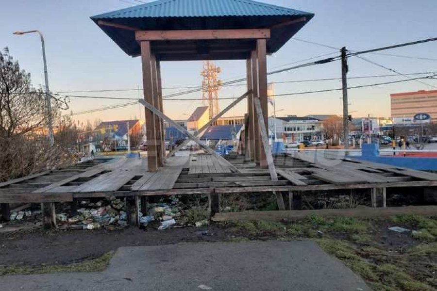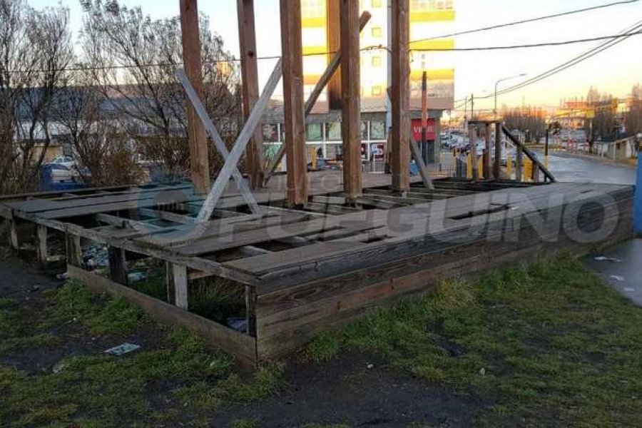 A más de diez años de su instalación el tiempo hizo lo propio y el lugar lo manifiesta. A la fecha solo quedan maderas rotas, debajo de las mismas un cumulo importante de basura por personas que utilizan el lugar para consumir alcohol, deshaciéndose de sus desechos en una estructura debilitada que va cediendo poco a poco.