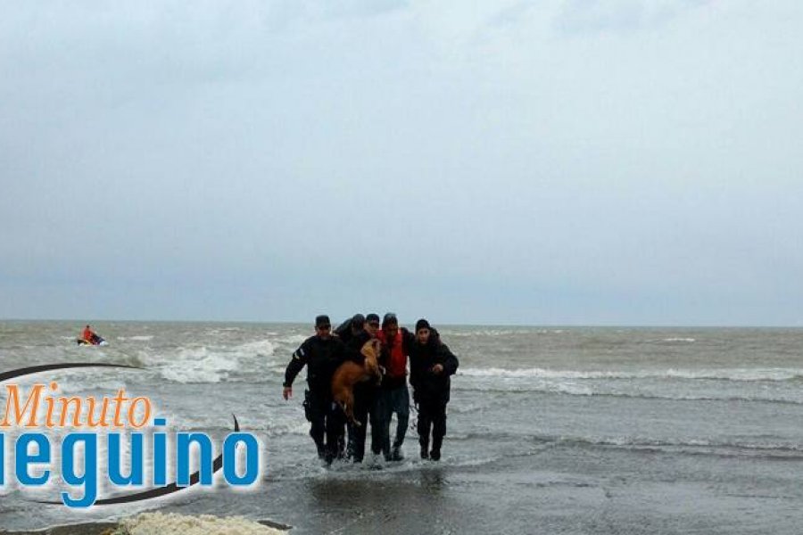Prefectura Naval concurre con una moto de agua hasta el lugar e Inician el rescate, trayendo a la cita a uno de los pescadores dejando al otro pescador y uno de Prefectura Naval en el pequeño islote de arena. En el segundo rescate, desafortunadamente caen a las frías aguas el segundo pescador, su perra y el de prefectura, haciendo más espectacular el rescate.