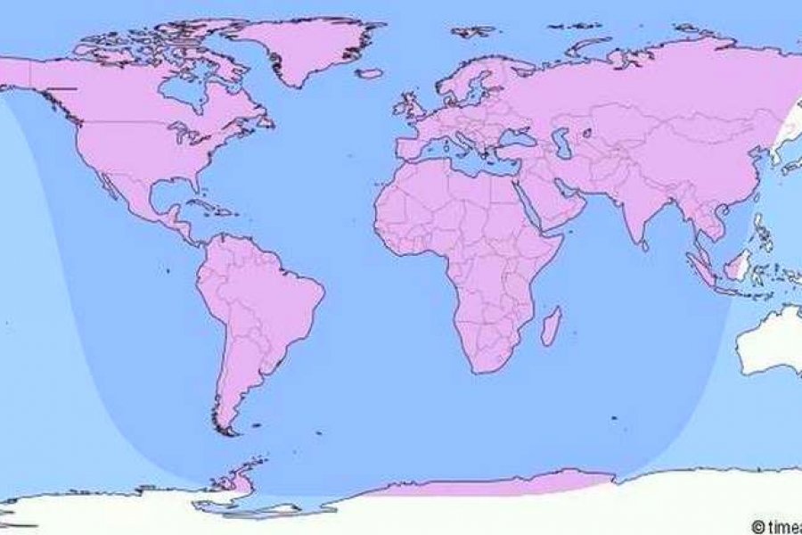 El mapa de dónde se verá el eclipse (www.timeanddate.com)