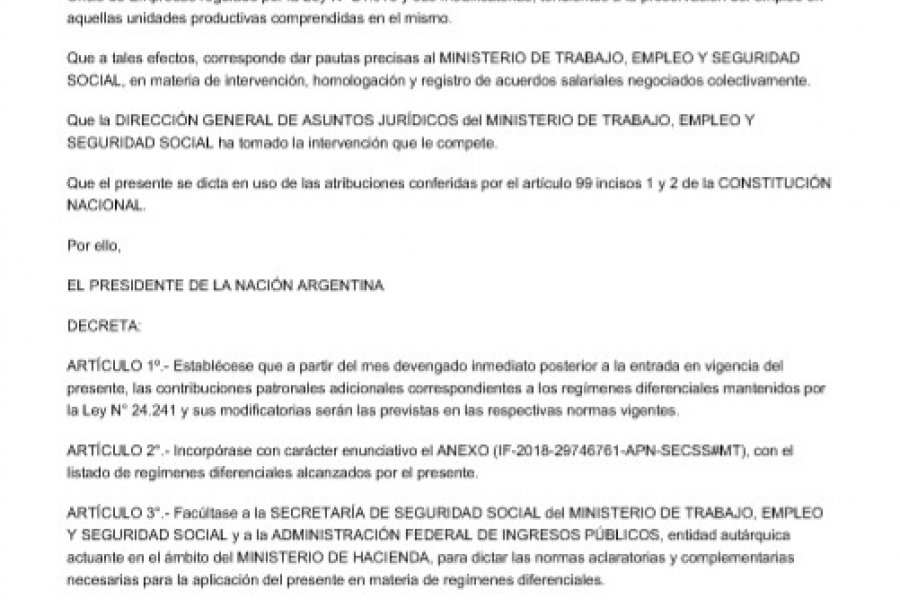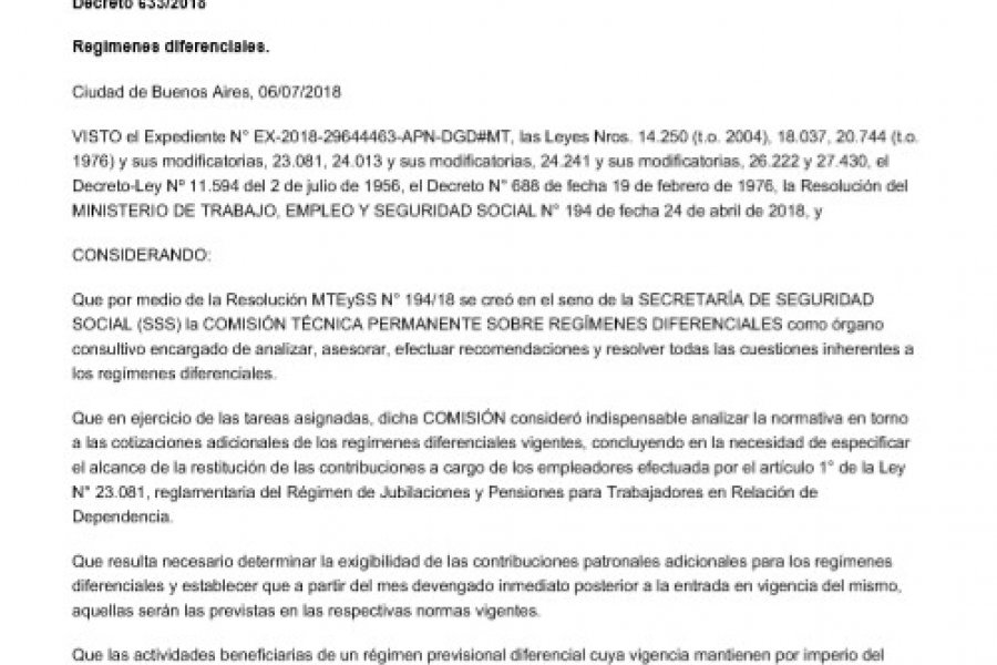 El Gobierno ya no aceptará sumas no remunerativas en los acuerdos salariales. Así lo dispuso a través del decreto 633/18 publicado este martes en el Boletín Oficial que alcanza tanto al sector privado como público, y que regirá a partir del 10 de agosto. De esa manera, la gestión de Mauricio Macri \"garantizar la sustentabilidad del régimen previsional\", ya que dichos importes están excluidos de los aportes y contribuciones a la seguridad social.