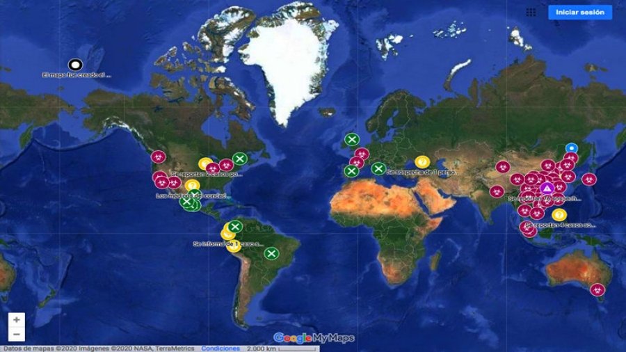 Usuarios de Google crearon un mapa interactivo que permite ver en tiempo real cómo avanza el coronavirus en todo el mundo, desde los casos confirmados, las sospechas y los cuadros descartados, hasta las fatalidades. El mapa provee de toda la información necesaria y se actualiza constantemente.