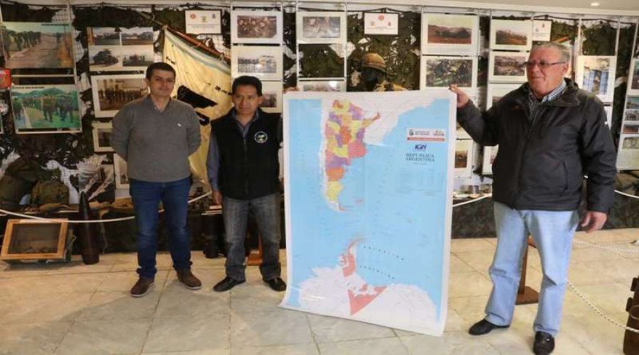 El subsecretario Dachary remarcó que “todas estas cosas refuerzan el vínculo con Malvinas y la Antártida y especialmente en esta provincia que tiene que tener un rol fundamental en esta tarea. Hemos realizado este trabajo que consiste en repartir en instituciones este mapa bicontinental y obviamente no podíamos empezar por otro lugar que no sea el centro de Veteranos de Guerra”.