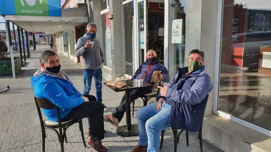 En el comienzo de la primavera, dos hombres mayores de edad decidieron poner una mesa afuera de la confitería La Fueguina de nuestra ciudad y desayunar en aquel lugar. Cabe destacar que los salones de confitería y restaurantes no están habilitados debido a la situación de pandemia que se vive en la provincia y al reclamo que están realizando los gastronómicos.
