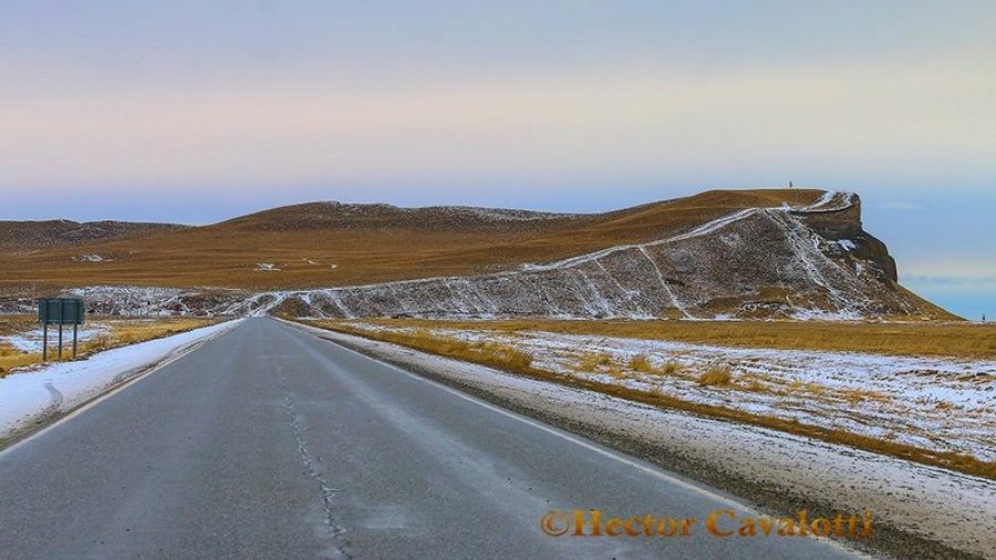 Calzada con escarcha/ sectores con nieve acuosa, cielo cubierto y vientos leves.
