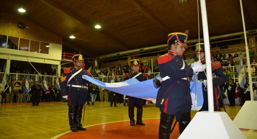 En los actos, los Granaderos fueron los encargados de ingresar el Pabellón patrio e izarlo junto a las autoridades, momentos que fueron recibidos con mucha emoción por parte de la población.