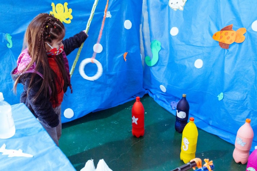 “Utilizamos materiales reciclados para el armado de estos espacios” indicó y destacó que “en estas jornadas las infancias pueden acceder a una tarde de entretenimiento, además transmitimos a madres y padres el valor de la creatividad, interacción y juego con materiales caseros”.