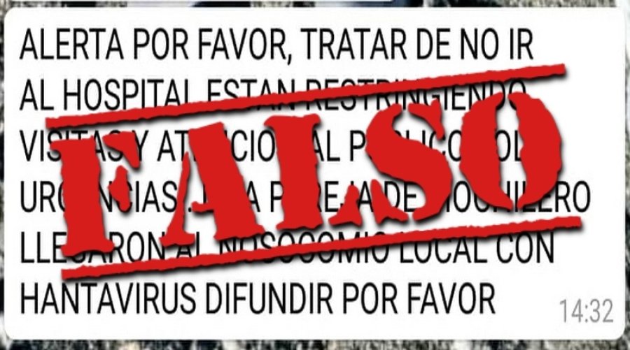 Durante las últimas horas comenzó a circular por las redes sociales un mensaje que decía: “alerta por favor, tratar de no ir al hospital estan restringiendo visitas y atencion al publico solo urgencias.. una pareja de mochilero llegaron al nosocomio local con hantavirus difundir por favor”.