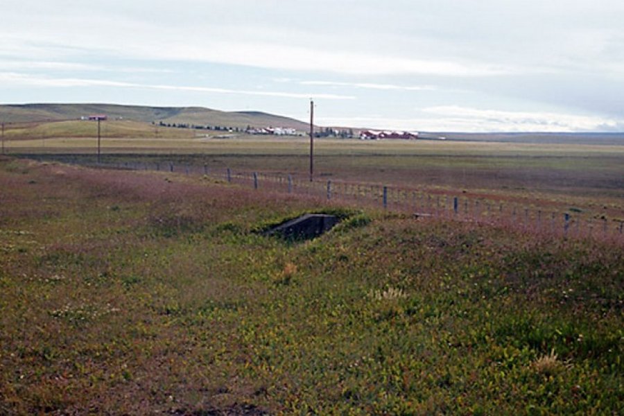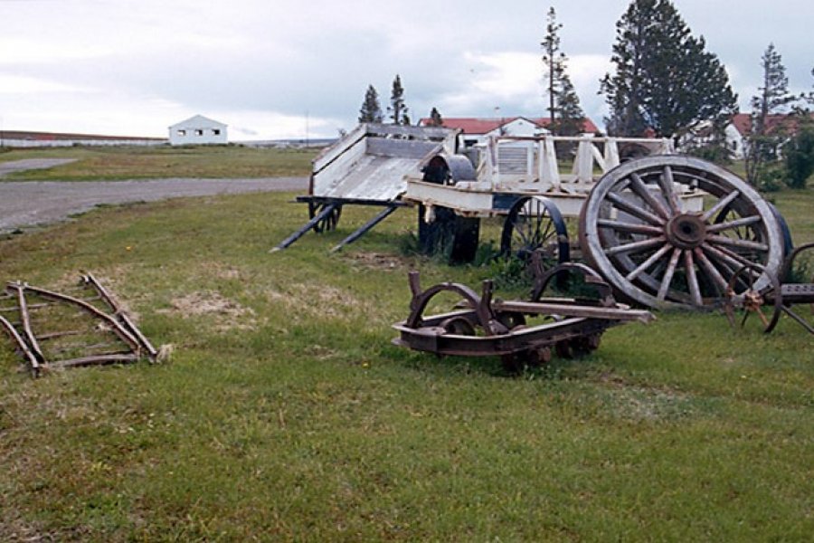 Ésta era una de las dos estancias iniciales creadas por el grupo Menéndez-Behety. Originalmente se denominaba Estancia Segunda Argentina. Aunque no había un ferrocarril, a nuestro conocimiento, la foto que sigue, gentileza el Señor David Guevara de Río Grande, muestra la forma alternativa de transporte para los bultos de lana.