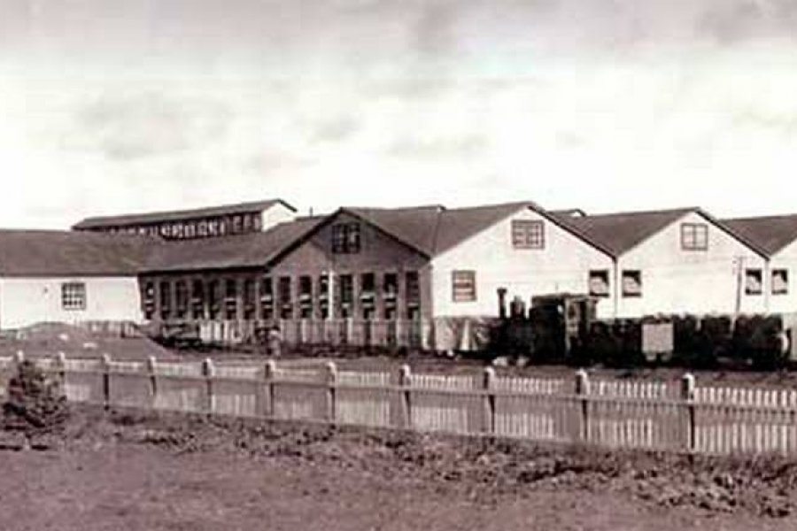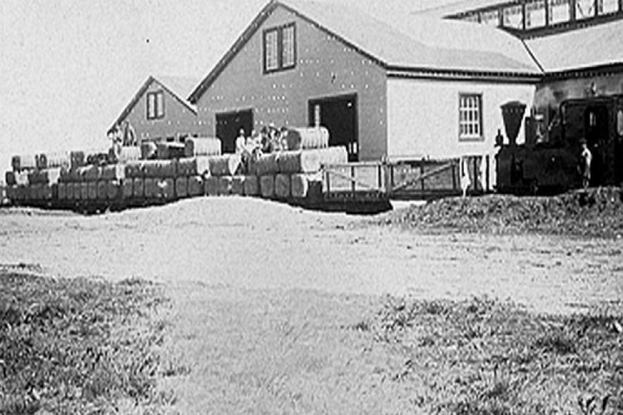 La cooperativa que construyó el frigorífico en 1917-8 fue dada la concesión de importar un ferrocarril sin impuestos para facilitar el movimiento alrededor de la factoría, también como vínculo al muelle (1). La red era de trocha 60cm, totalmente adecuado para una línea de uso en una fábrica y con la capacidad de tener curvas de radio reducido dentro los edificios.