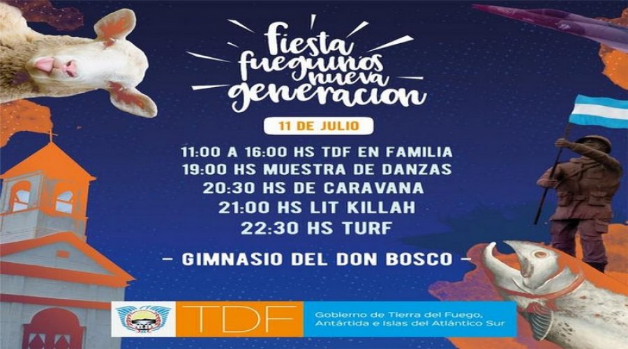 El Gobierno de la Provincia llevará a cabo el próximo martes 10 la tradicional cena de los Pioneros Fueguinos, y el miércoles 11, día de un nuevo aniversario de Río Grande, habrá diversas actividades para los más jóvenes. Los festejos de “Fueguinos Nueva Generación” comenzarán con actividades del “TDF En Familia” y luego, harán su presentación la banda de De caravana, el rapero LIT Killah, y el cierre de la jornada estará a cargo de la reconocida banda de rock nacional “Turf”. Ambos eventos se llevarán a cabo en el gimnasio de la escuela “Don Bosco”.
