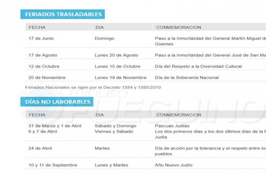 Asimismo, se acerca un falso feriado, ya que el próximo 24 de abril será un día no laborable por el Día de acción por la tolerancia y el respeto entre los pueblos, que recuerda al Genocidio Armenio. En rigor, el empleador tiene la potestad de determinar si les da o no el día libre a sus trabajadores. En torno a esta fecha, se creó una enorme confusión y despertó la lluvia de consultas en Google.