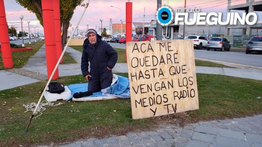 Durante la madrugada del lunes Ricardo González vecino de la ciudad de Río Grande, se instaló como forma de protesta en la intersección de Perito Moreno y Belgrano