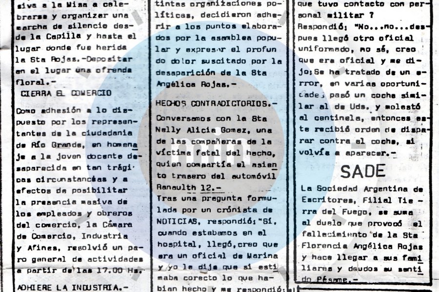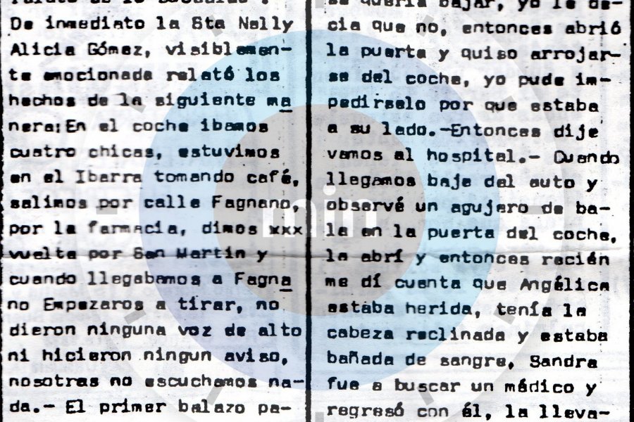 “Dimos vuelta por San Martin, y cuando llegamos a Fagneano, por la farmacia, empezaron a tirar no dieron ninguna voz de alto. (..) El primer balazo pasó sobre mi cabeza, les dije a las chicas que se tiren, ellas no tuvieron tiempo de nada”.Nely Gómez (Medio: Noticias – Rio Grande- publicación del día martes 14 de diciembre de 1982)